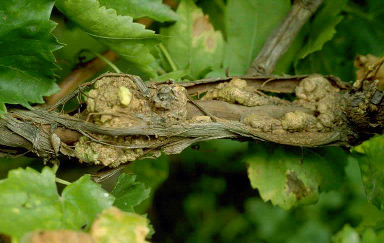 Pagrindinis požymis – ant stiebų, šakų, ūglių atsiradusios šviesios, minkštos išaugos, kurios vėliau tampa kietos, rudos, susiraukšlėjusiu paviršiumi. Susirgę augalai silpnai auga, skursta. Sukėlėjas įsiskverbia pro pažeistas augalo vietas, nuo šalčio atsiradusius žievės plyšius.