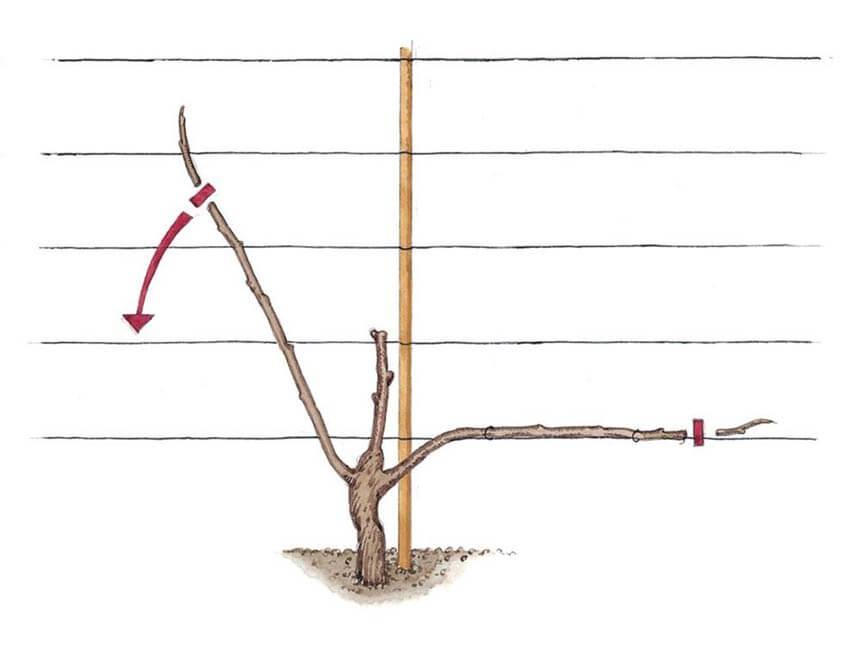 - Metūgliai išlenkiami lanku, taip padaugėja ūglių metre skaičius, todėl derlius būna didesnis.